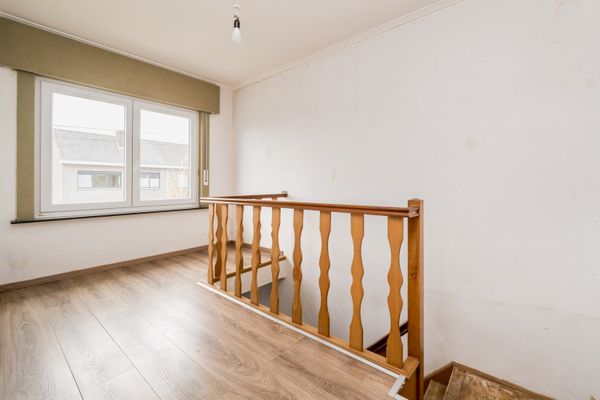 Inkomhal, open leefruimte overlopend naar veranda, keuken met steens werkblad, gastentoilet, wasplaats, ingemaakte kastruimte en volledig vernieuwde badkamer. Aan de leefruimte is er nog een verzonken en droge berging. Op de 1ste verdieping vinden we: overloop en 3 slaapkamers.